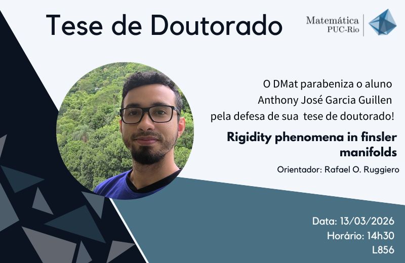O DMat parabeniza o aluno Anthony José Garcia Guillen pela defesa de sua tese de doutorado realizada
