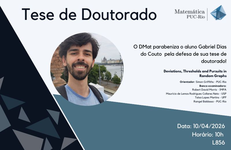 O DMat parabeniza o aluno Gabriel Dias do Couto pela defesa de tese de doutorado realizada no dia 10 de abril de 2026.