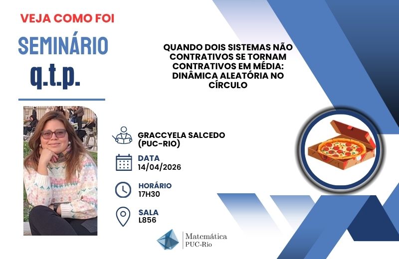 Veja como foi o nosso Seminário q. t. p., realizado no dia 14 de abril de 2026, com a participação da nossa pós-doutoranda Graccyela Salcedo, que ministrou a palestra intitulada “Quando dois sistemas não contrativos se tornam contrativos em média: dinâmica aleatória no círculo”.
